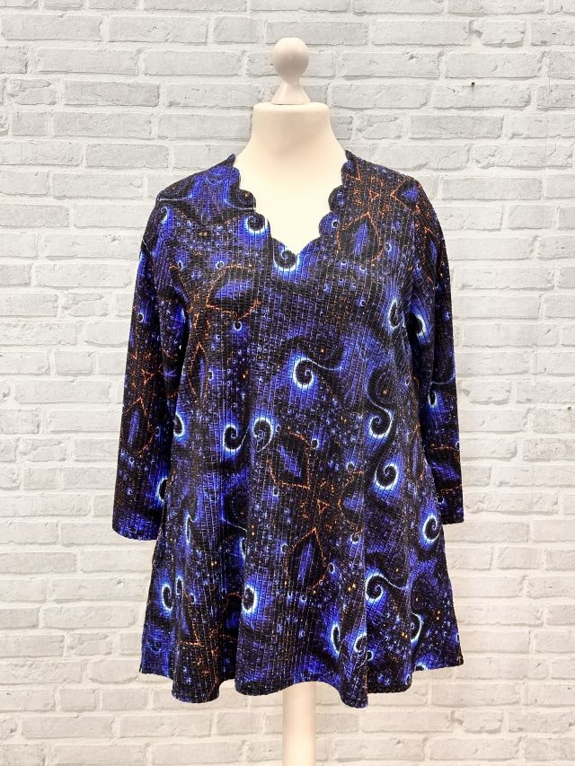 Edles Tunika-Oberteil aus weichem Struktorstoff mit tollem V-Ausschnitt mit Wellendesign und langem Arm, sowie seitlichen Eingrifftaschen