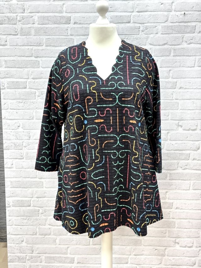 Edles Tunika-Oberteil aus weichem Struktorstoff mit tollem V-Ausschnitt mit Wellendesign und langem Arm, sowie seitlichen Eingrifftaschen