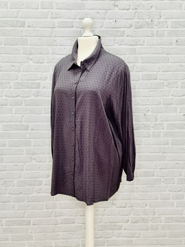 Wunderbar weich fließende Bluse mit Pünktchenstruktur. Sie hat einen klassischen Hemdkragen und lange ÄRmel mit schmalen MAnschetten