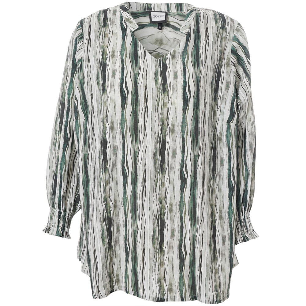 Leichte, stilvolle Bluse aus einer weichen Viskosemischung mit angenehmer Struktur. Das Modell hat einen femininen V-Ausschnitt und lange Ärmel mit gesmogten Manschetten. Durch den geraden, locker fallenden Schnitt trägt sich die Bluse besonders bequem und sorgt für eine elegante Silhouette. Ein vielseitiges Kleidungsstück, das sich perfekt für Büro, Freizeit oder Abendanlässe eignet.