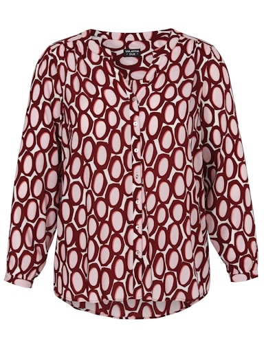 Diese stilvolle Bluse mit lebendigem Allover-Print bringt frische Eleganz in Ihren Alltag. Der schmeichelhafte V-Ausschnitt zaubert ein schönes Dekolleté, während der weich fallende Stoff angenehm umspielt und kleine Problemzonen charmant kaschiert. Die 3/4-Ärmel sorgen für eine moderne Leichtigkeit – ideal für Büro, Dinner oder City-Bummel. Ein echtes Lieblingsstück für Frauen, die modisch auffallen und sich rundum wohlfühlen möchten.