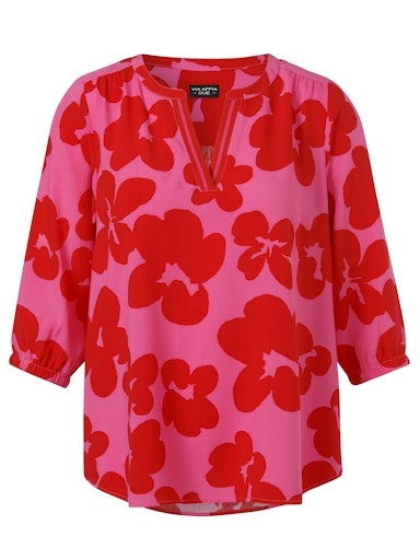 Diese Tunika überzeugt mit einem ausdrucksstarken Druck und einer angenehm leichten, fließenden Qualität. Der feminine V-Ausschnitt und die 3/4-Ärmel sorgen für eine lockere, schmeichelnde Silhouette, während die Farbkombination in Pink und Rot dem Modell eine moderne Ausstrahlung verleiht.
