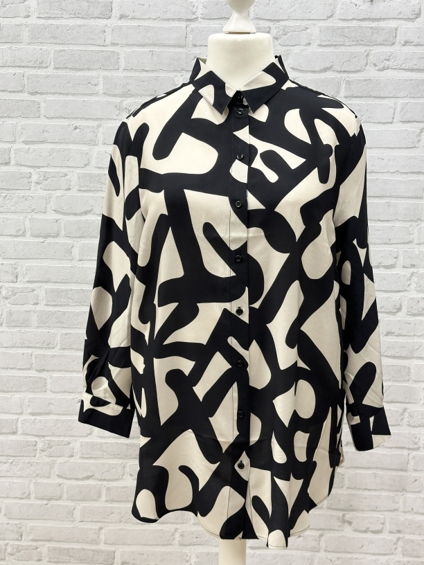 Weich fließende Bluse mit elegantem Muster in schwarz und beige. Sehr schön und elegant.