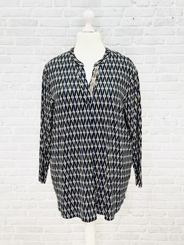 Edles, langes Shirt im Tunika-Style. Es hat ein edles Muster und der Ausschnitt ist mit Glitzerband besetzt.