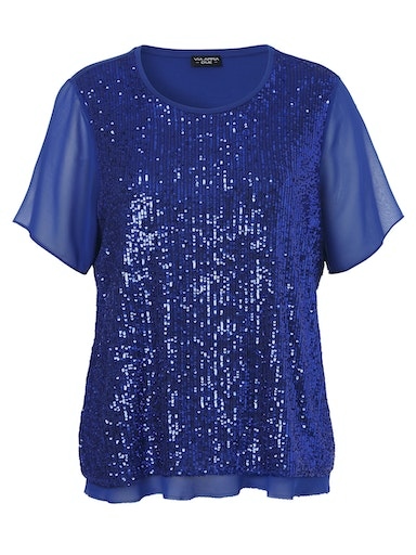 Wunderschönes edles Shirt mit einem Vorderteil aus Pailletten und fransigem Saum aus leichtem Chiffonstoff. Lässig und edel zugleich