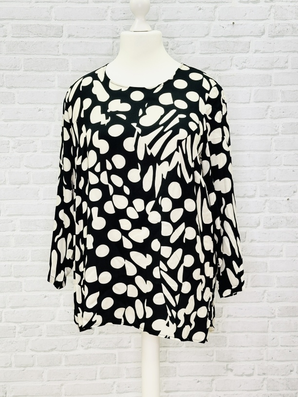 Elegante Schlupfbluse in Tunikaform mit edlem Schwarz/Creme-Muster