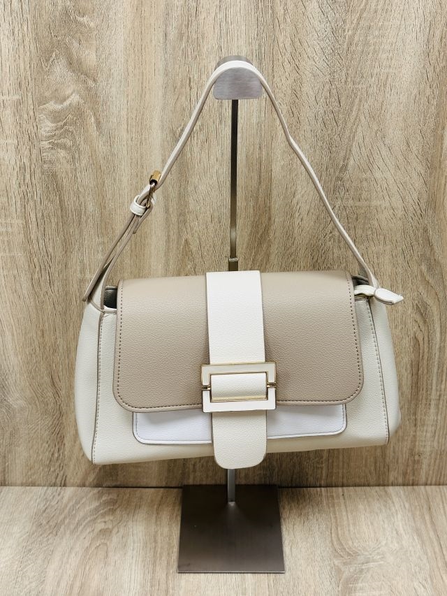 Elegante Tasche aus hochwertigem Kunstleder. Sie hat einen kleinen Henkel und zusätzlich noch einen verstellbaren SchulterriemenInnen eine schöne Aufteilung
