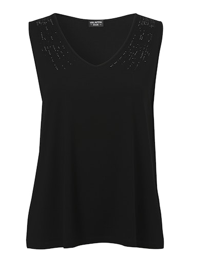 Ein edles und angenehm weiches Top, das mühelos Alltag und Eleganz verbindet. Der tiefe V-Ausschnitt ist mit funkelnden Strassdetails verziert und setzt ein stilvolles Highlight – perfekt für Frauen, die dezente Glam-Elemente lieben, ohne auf Komfort zu verzichten.