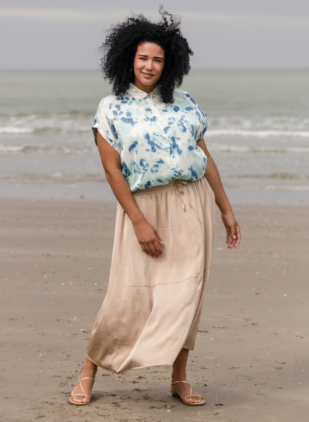 Dieser Satinrock aus der Sommerkollektion von Yesta hat eine lockere Passform und ist mit Taschen und einem elastischen Bund mit Kordelzug ausgestattet. Die Länge des Rocks ist bis zur Mitte der Wade. Tragen Sie ihn mit der passenden Jacke für einen kompletten Sommerlook!