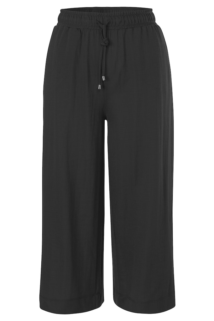 Weich fließende, weit geschnittene Hose in verkürzter Form "Culotte". Sie hat einen breiten, elastischen Bund mit Kordelzug und seitliche Eingrifftaschen. Super angenehm und weich.