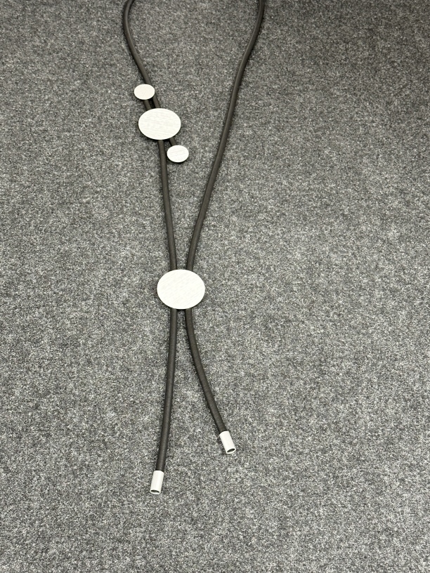 Lange Kautschukkette mit silberfarbenen Ornamenten. Perfekter, modischer Style - besonders auch für den angesagten Lagen-Look