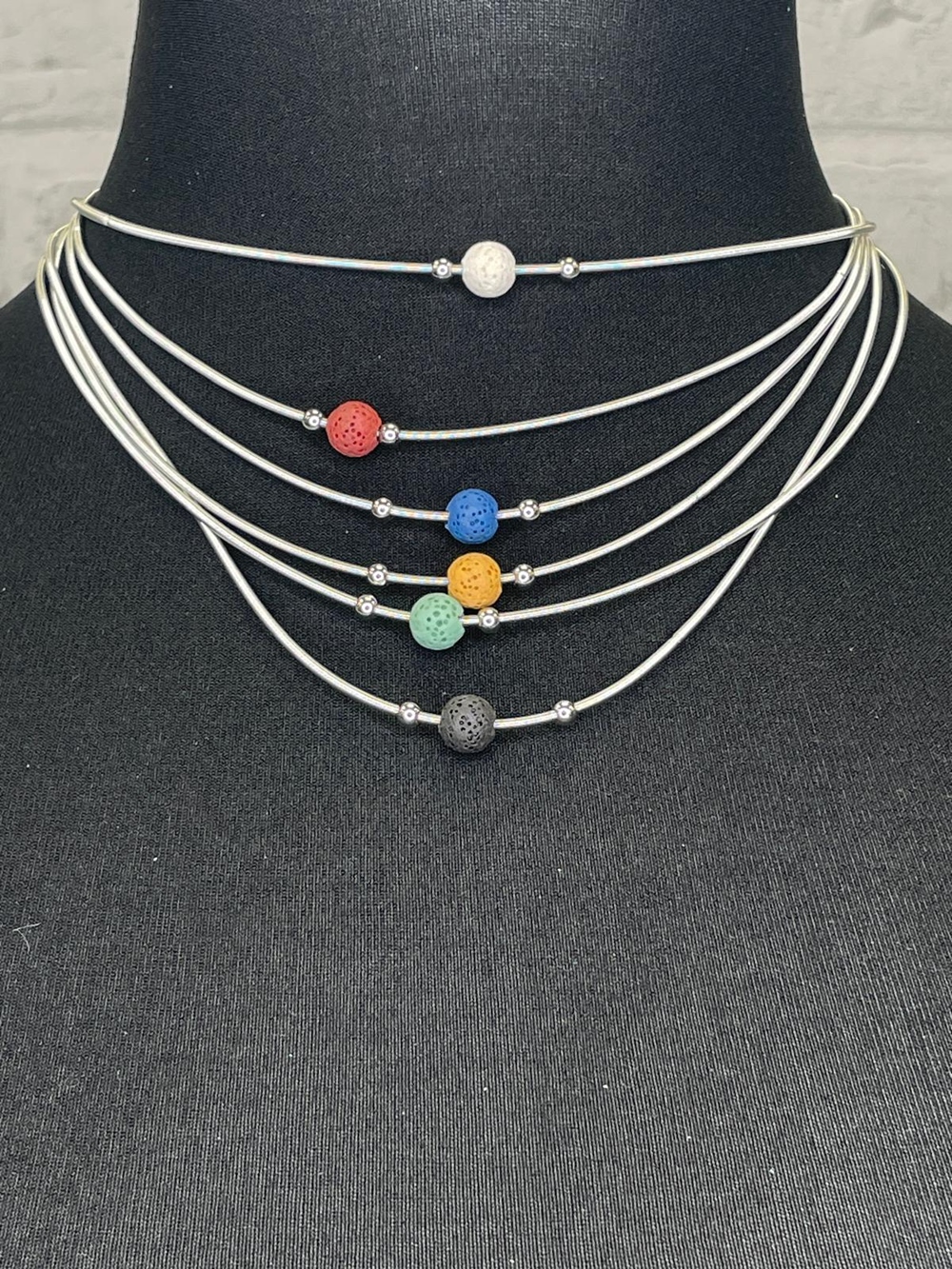 Mehrreihige Kette aus elastischen Metallbändern und mit schönen Schmuckelementen und Magnetverschluss