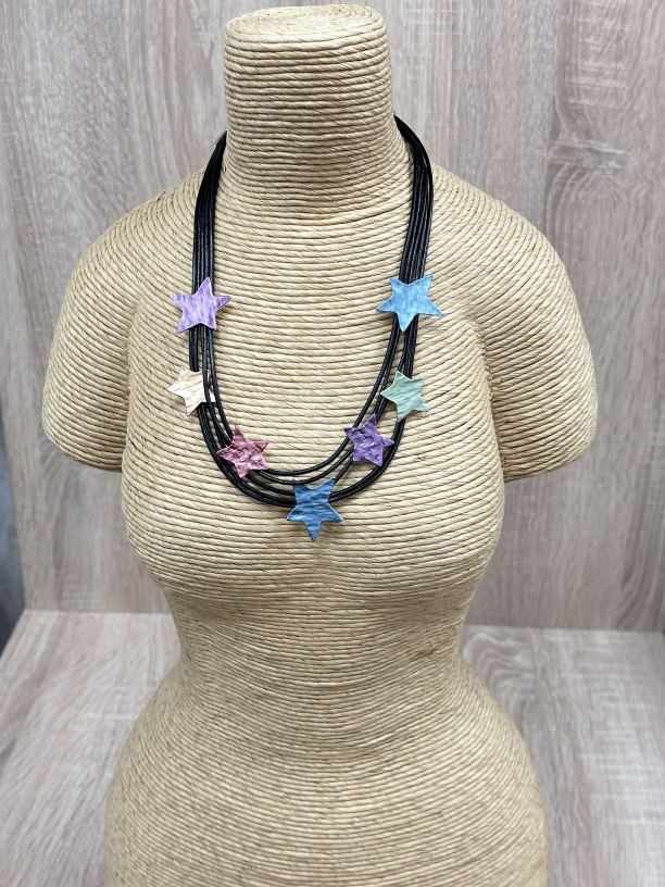 Zauberhafte kurze Kette aus gewachsten Bändern mit Sternen.
