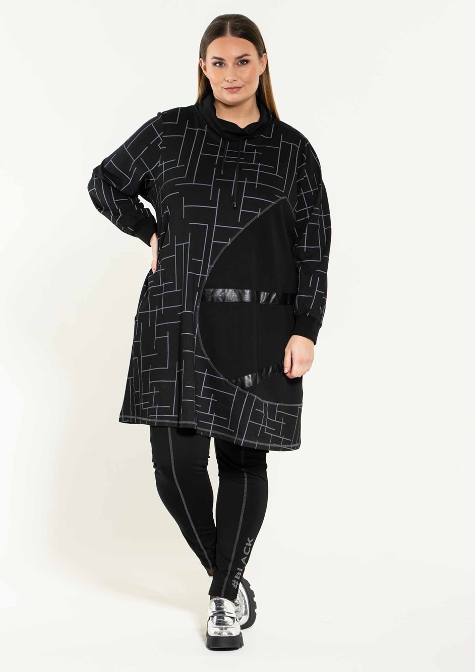 Weich fließendes A-Linie Tunika-Kleid mit grafischem Muster und Stehkragen mit Kordelzug. Super lässig und cool