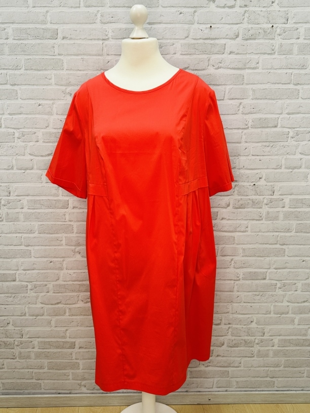Dieses elegante Baumwollkleid mit ausgefallenem Schnitt vereint klassischen Chic mit moderner Raffinesse. Der ausgefallene Schnitt mit der wiener Naht und den seitlichen Falten verleiht dem Kleid eine besondere Note. Edler, leichter, dehnbarer Baumwollstoff sorgt für edle Bequemlichkeit.