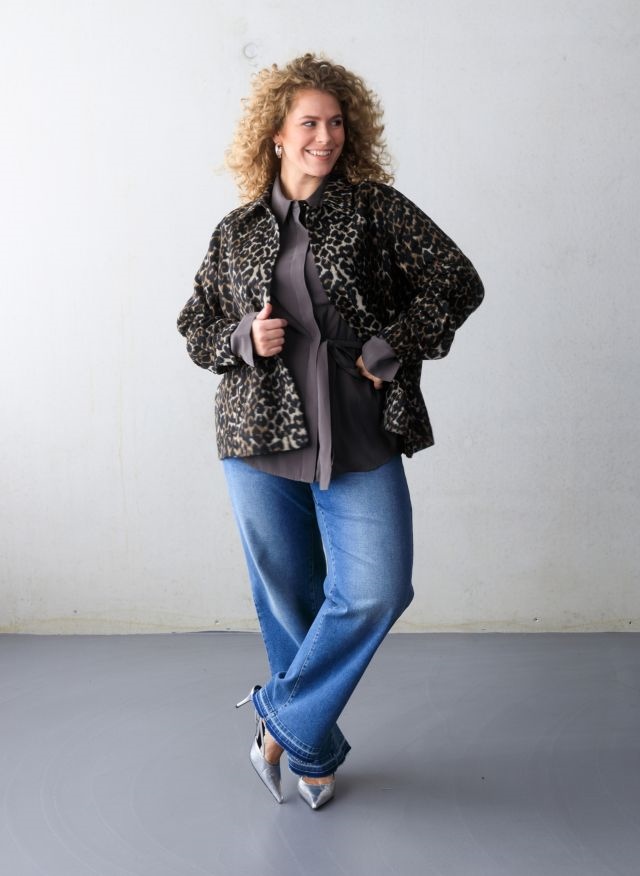 Diese Jacke aus weichem Material in Animal-Optik ist ein modisches Multitalent. Das kurze Modell wird mit Druckknöpfen geschlossen und hat einen klassischen Kragen sowie praktische Taschen. Da sie ungefüttert ist, bleibt sie angenehm leicht und lässt sich sowohl als Indoor-Jacke als auch als lässige Übergangsjacke tragen. Ein stylischer Begleiter für vielseitige Looks.