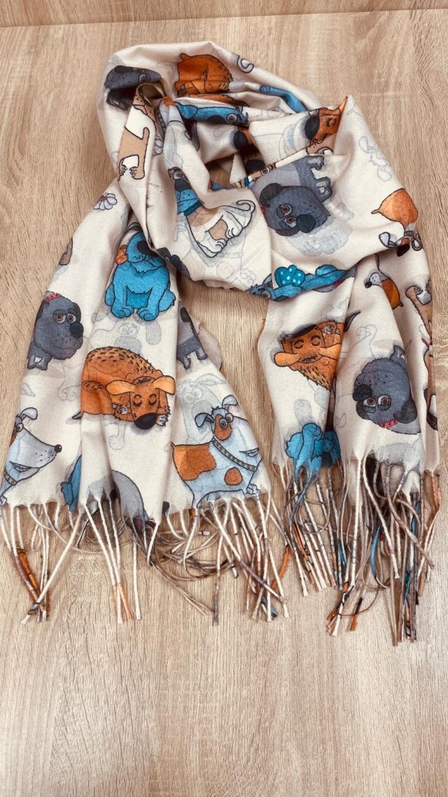Dieser kuschelweiche Schal begeistert mit seinem charmanten Design: Witzige Hundefiguren zieren das feine Material und verleihen dem Accessoire eine verspielte, zugleich edle Note. Die zarten Fransen an den Enden runden den Look harmonisch ab. Leicht, weich und anschmiegsam – perfekt, um jedem Outfit eine individuelle und liebevolle Note zu geben.