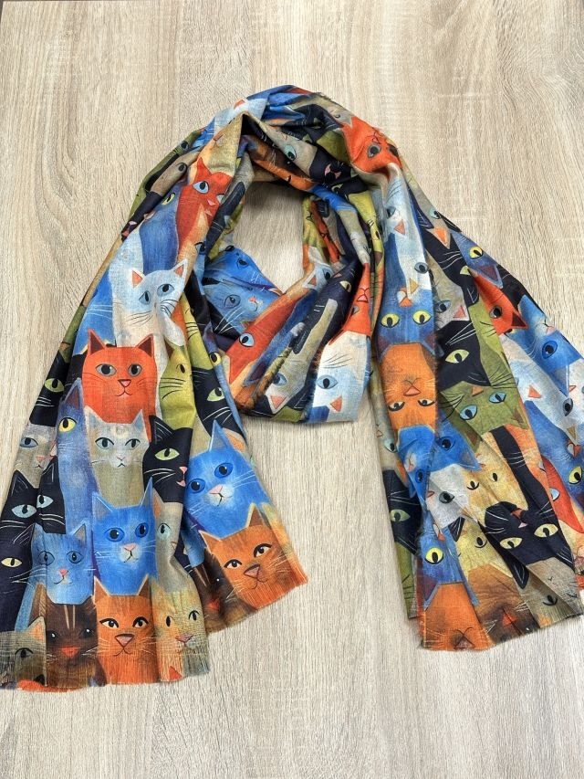 Ein Schal zum Verlieben – kuschelweich, witzig und einfach besonders! Das pfiffige Katzenmotiv macht diesen Schal zu einem echten Hingucker, ideal für alle, die ihren Look mit Humor und Stil kombinieren möchten. Das Material aus Viskose und Wolle fühlt sich angenehm weich an und sorgt für wohlige Wärme.