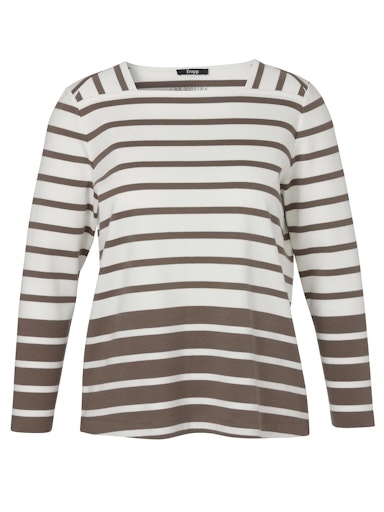 Weiches, etwas festeres Langarmshirt mit ausgefallenem Ausschnitt und Ringelmuster