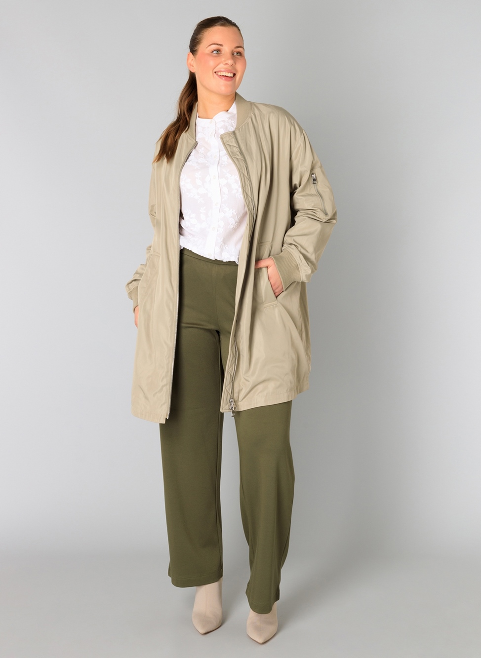 Diese lange Bomberjacke erhält durch den glatten Stoff und den geraden Schnitt einen modernen, minimalistischen Look. Der 2-Wege-Reißverschluss bietet viel Bewegungsfreiheit und die bequeme Passform macht sie zur perfekten Jacke für kühle Frühlingstage.