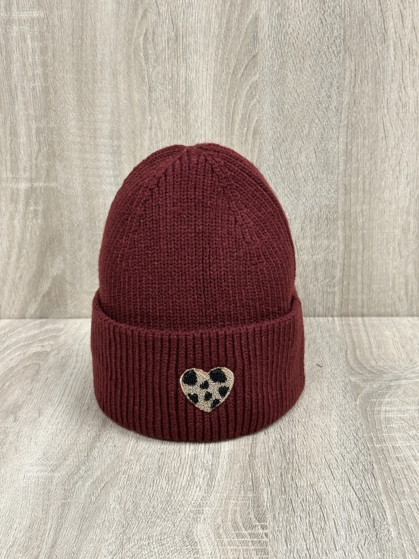 Diese Strickmütze kombiniert verspielte Details mit angenehmer Wärme. Der breite Umschlag sorgt für einen trendigen Look und die flauschige Herz-Applikation im Leodesign setzt ein süßes Highlight.  Perfekt für kalte Tage und ein modisches Accessoire für winterliche Outfits.
