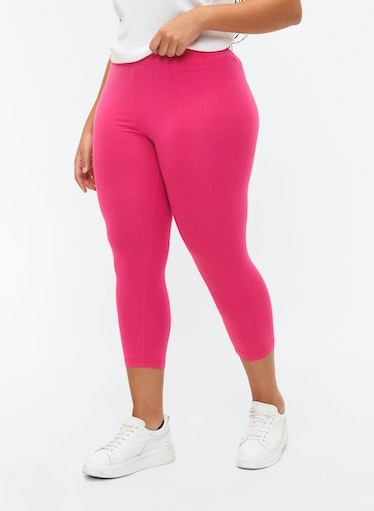 Einfache 3/4-lange Leggings aus weichem, dehnbarem Viskosematerial. Sie haben einen Gummizug in der Taille und sind in einem schlichten, unifarbenen Design gehalten.