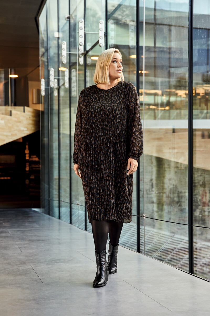 Schickes Kleid mit Futter aus Polyester von Ciso. Dieses knielange Kleid hat eine lockere Passform und einen schlichten runden Halsausschnitt. Die langen Ärmel sind besonders weit und schließen mit einem Smock-Detail ab. Ein wirklich schönes Kleid.