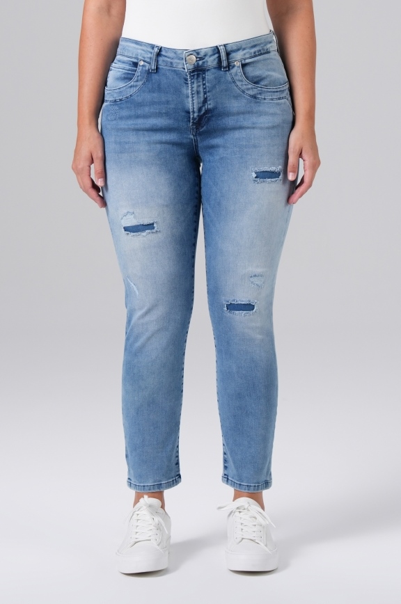 Tolle Jeans mit cooler Waschung und unterlegten Cutouts. Super lässig und modern. Sie ist etwas kürzer geschnitten (26") und kann super mit Sneakern getragen werden. Ein echter Hingucker !