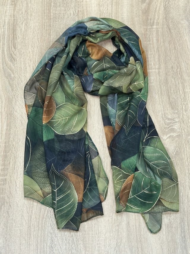 Leichter Viskoseschal mit Blattmuster und goldigen Highlights