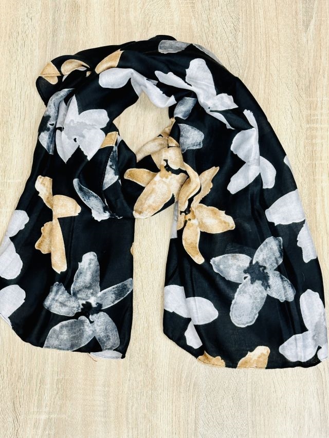 Weicher, etwas dickerer Webschal mit Blütenmotiv