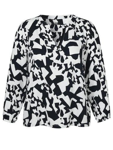 Elegante Langarmbluse zum Schlupfen. Sie hat einen schönen Tunika-Ausschnitt und ein tolles Muster in weiss/dunkelblau