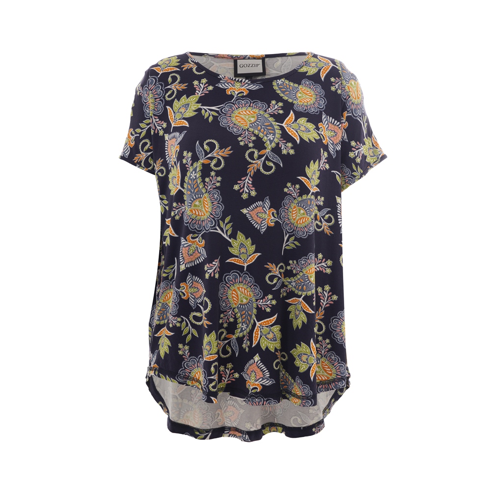 Weich fließendes Shirt mit überschnittenem Arm und gerundetem Saum. Tolles All-Over-Muster