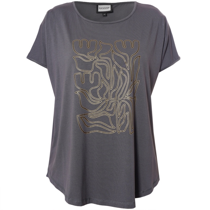 Dieses modische T-Shirt aus weicher Viskose-Elasthan-Mischung besticht durch seinen modernen Frontprint in Kontrastfarbe. Das Material ist angenehm dehnbar und sorgt für hohen Tragekomfort. Der Rundhalsausschnitt, die leicht überschnittenen Schultern und der locker fallende Schnitt verleihen dem Shirt eine lässige Silhouette. Der abgerundete Saum rundet den Look harmonisch ab – perfekt für einen entspannten, stilvollen Auftritt.