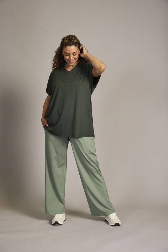 Dieses Shirt vereint lässigen Stil mit hohem Komfort. Der V-Ausschnitt setzt eine feminine Note, während die leichte, elastische Qualität für optimale Bewegungsfreiheit sorgt. Perfekt für entspannte Freizeitlooks oder sportliche AktivitätenHighlights: