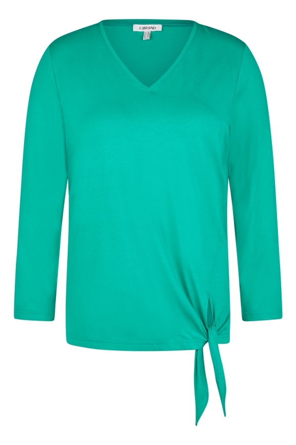 Ausgefallenes Basic-Shirt mit V-Ausschnitt und Knoten am Saum. Super schön und trotzdem als Basic sehr gut zu kombinieren.