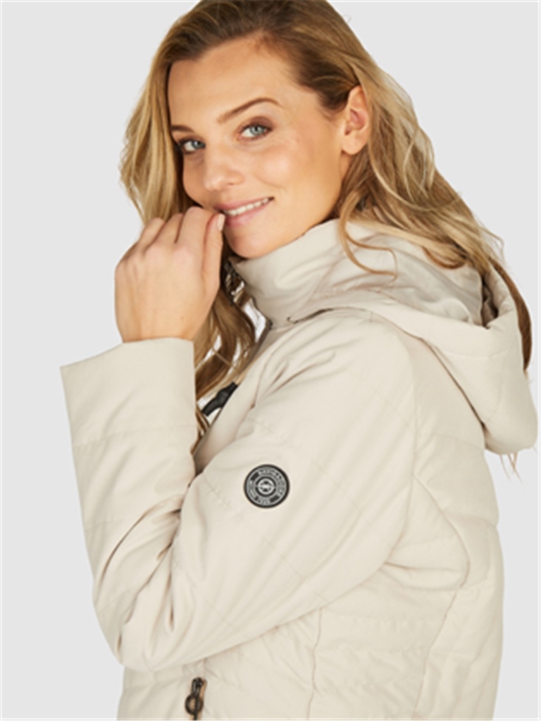 Angenehm weiche Jacke mit toller Steppung. Sie hat eine Abnehmbare Kapuze und Reißverschlusstaschen.
