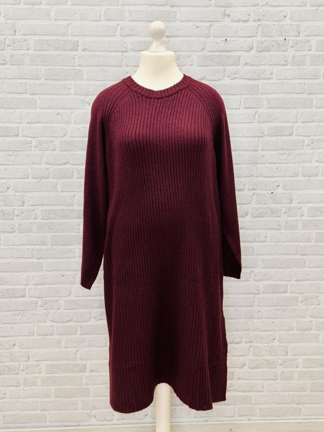 Knielanges Strickkleid aus Acryl, Polyamid, Wolle und Polyester von Ciso. Dieses Kleid ist wirklich schick. Die Ärmel sind in Raglanform gestrickt und glatt. Der Rest des Kleides ist in einem Rippmuster gehalten und hat hohe seitliche Schlitze. Ein wirklich schönes Kleid für den Alltag und festliche Anlässe.