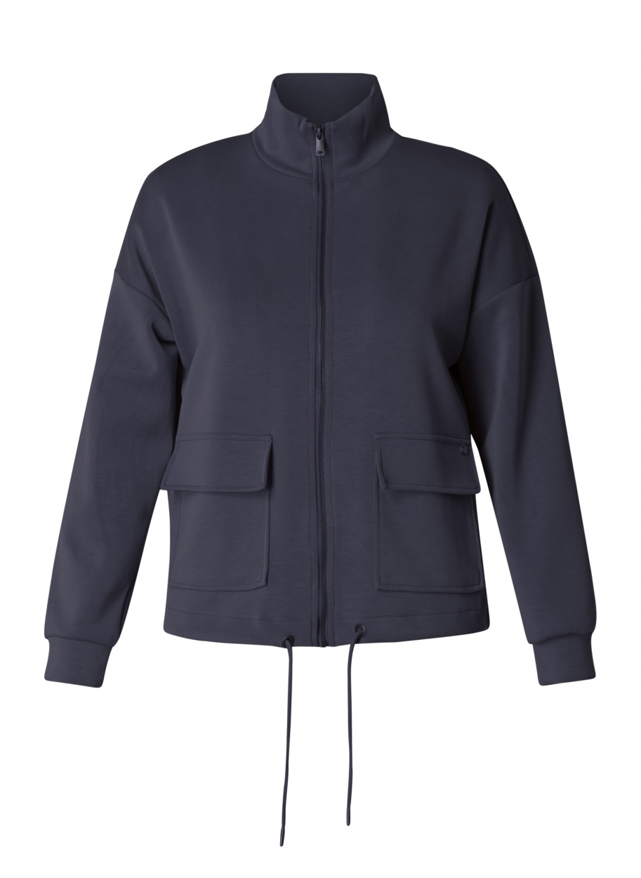 LeichteJAcke in weicher Modal-Polyester-Qualität mit aufgesetzten Pattentaschen und einem Stehkragen mit Reißverschluss. Der gerade Schnitt hat unten einen Kordelzug