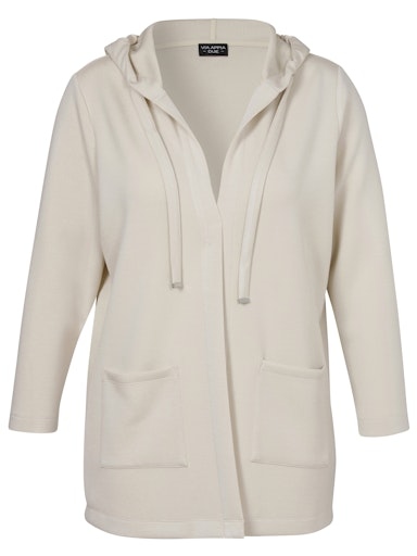 Diese offen geschnittene Jacke ist der perfekte Begleiter für jeden Tag – gemütlich, stilvoll und vielseitig kombinierbar. Der lässige Schnitt mit Kapuze schenkt ein modernes, sportiv-elegantes Gefühl, während das weiche Material sanft fällt und Ihre Figur vorteilhaft umspielt. Ein ideales Layering-Piece, das Sie sowohl im Büro als auch in der Freizeit zum Strahlen bringt.