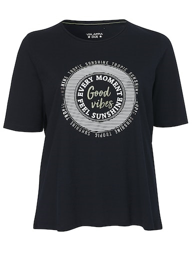 Lässiges Shirt mit rundem Ausschnitt und Aufdruck "Good Vibes" in weiss, silber und glitzerdem Grün