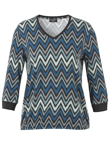 Lässiges Shirt mit kontrastfarbenen Bündchen und Ausschnitt mit tollem Muster