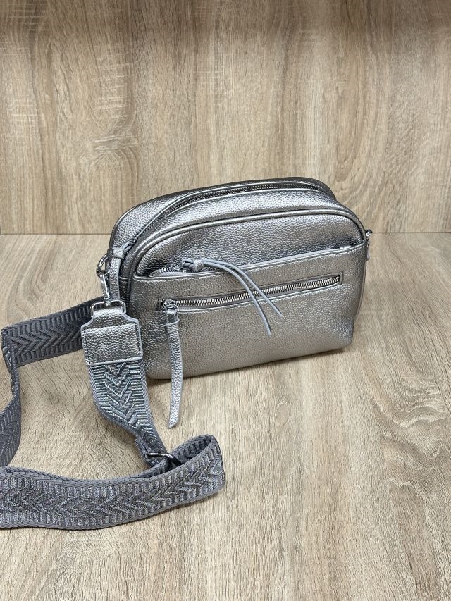 Praktische kleine Tasche mit 1 großen Reißverschluss-Fach und 3 kleinen. Breiter Deko-Riemen