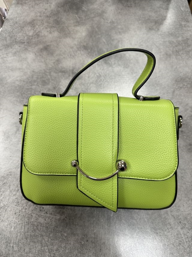 Kleine, feste Handtasche mit Zierschnalle und kleinem Henkel. Zusätzlich gibt es einen Schultergurt.