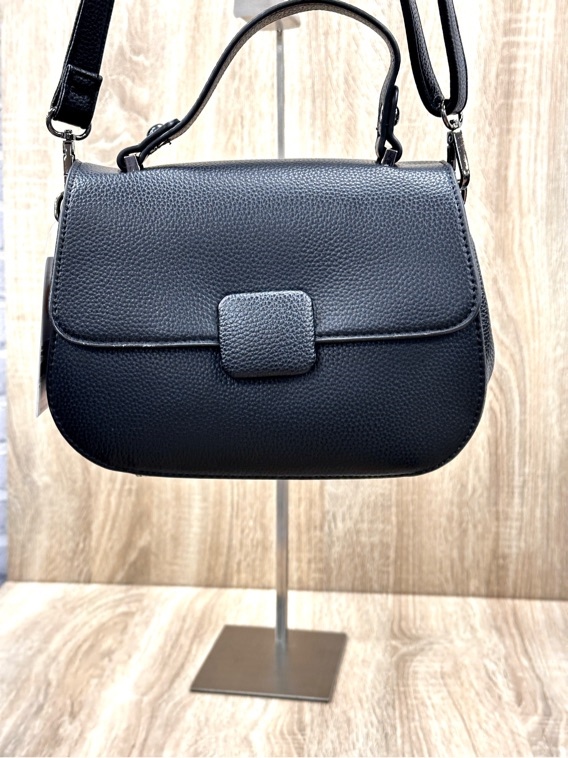 Elegante kleine Tasche mit kurzem Henkel und extra Schulterriemen. Innen zwei Reißverschlussfächer und kleine Innenfächer