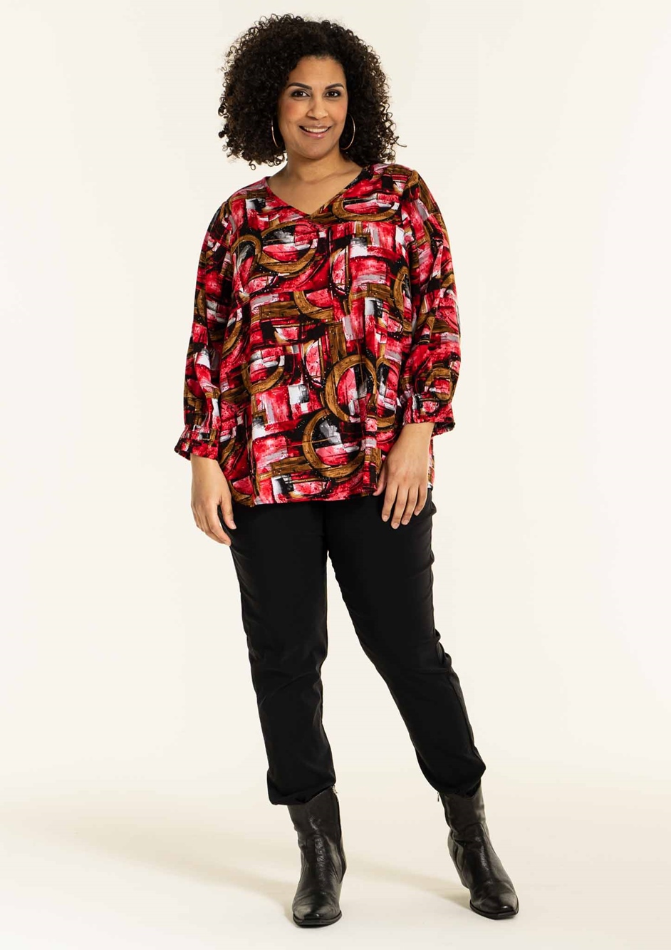 Tolle Tunika-Bluse mit V-Ausschnitt und 3/4 langem Arm mit gesmogtem Bündchen