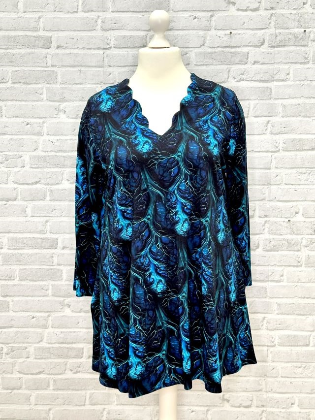 Edles Tunika-Shirt mit tollem V-Ausschnitt mit Wellendesign und langem Arm, sowie seitlichen Eingrifftaschen