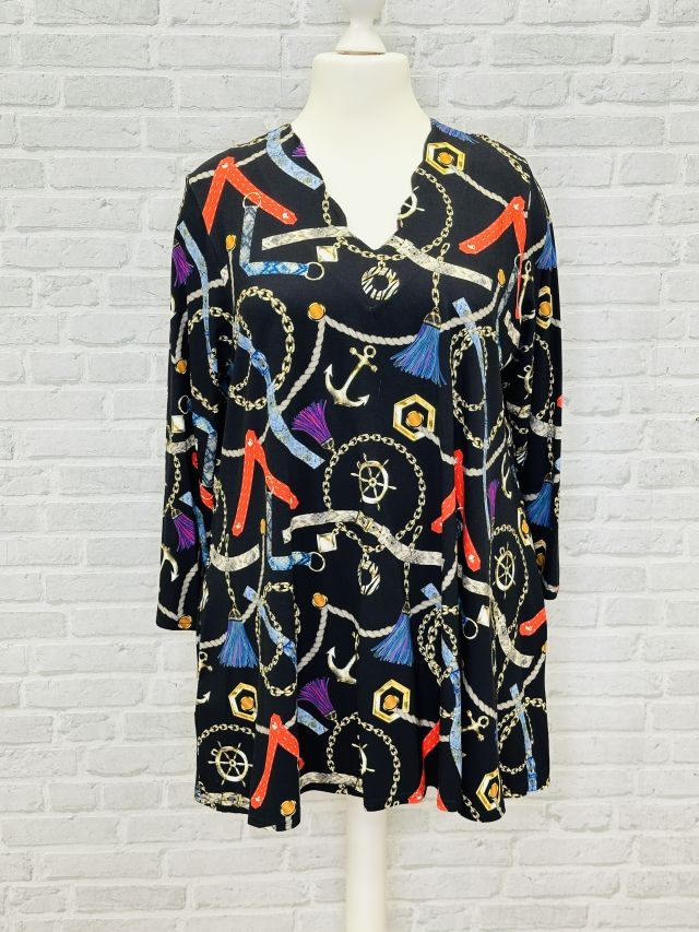 Edles Tunika-Shirt mit tollem V-Ausschnitt mit Wellendesign und langem Arm, sowie seitlichen Eingrifftaschen