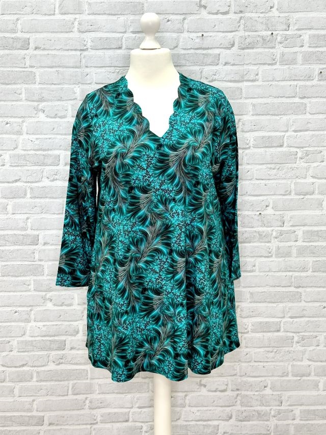 Edles Tunika-Shirt mit tollem V-Ausschnitt mit Wellendesign und langem Arm, sowie seitlichen Eingrifftaschen