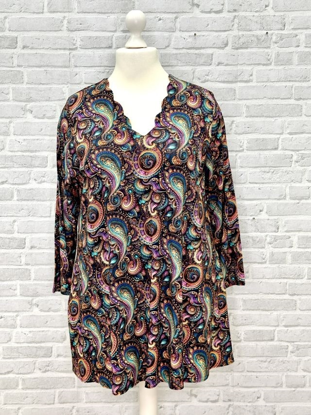 Edles Tunika-Shirt mit tollem V-Ausschnitt mit Wellendesign und langem Arm, sowie seitlichen Eingrifftaschen